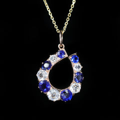 - Stones:12 French Cut Sapphires (approx. 0.71 carats total weight); 9 Round Brilliant Cut Diamonds (approx. 0.21 carats total weight, SI1/SI2 clarity, G color)