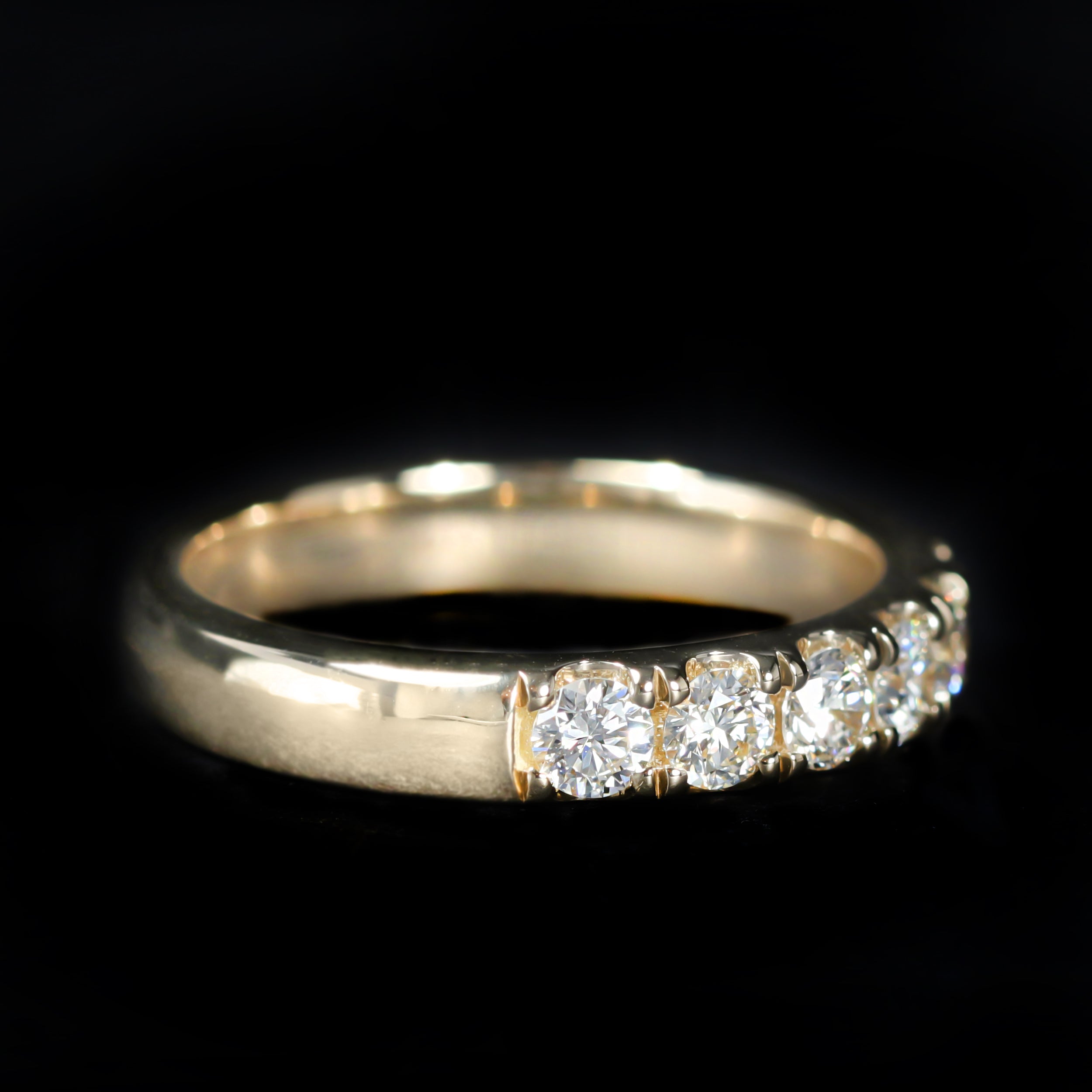 Advances in stone cutting led to slightly cushion-shaped Old Mine cut and Old European cut diamonds — both predecessors of modern round brilliant cut diamonds. The introduction of the six-prong Tiffany setting in 1886 popularized the diamond engagement ring, This led to an increase in popularity of the solitaire diamond ring, which replaced simple gold bands as the go-to choice for engagement and betrothal rings during the Victorian era.
