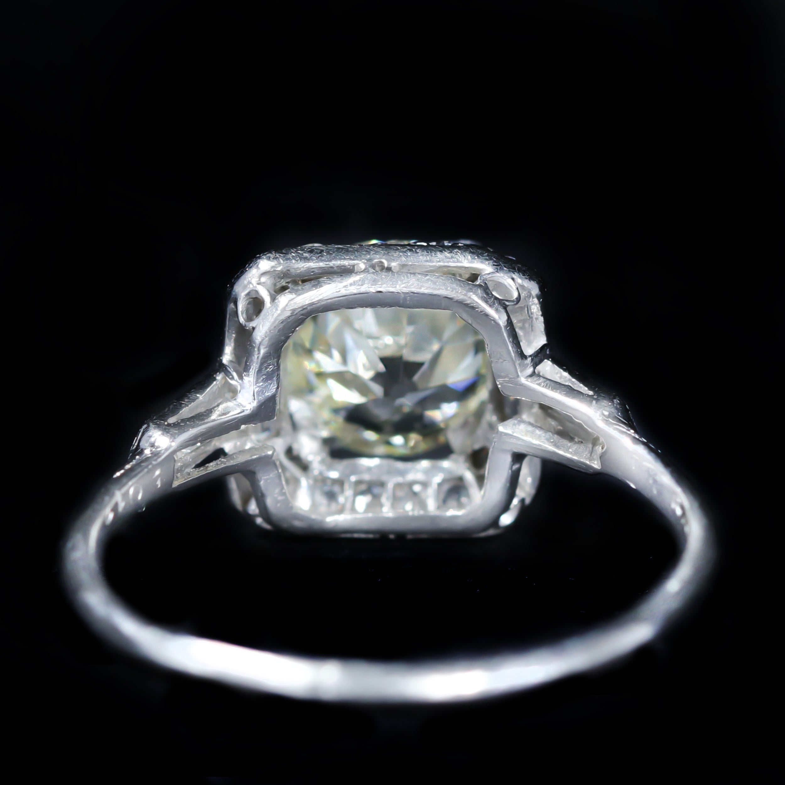 Art Deco Platinum 1.70 Carat Old European Cut Diamond Engagement Ring