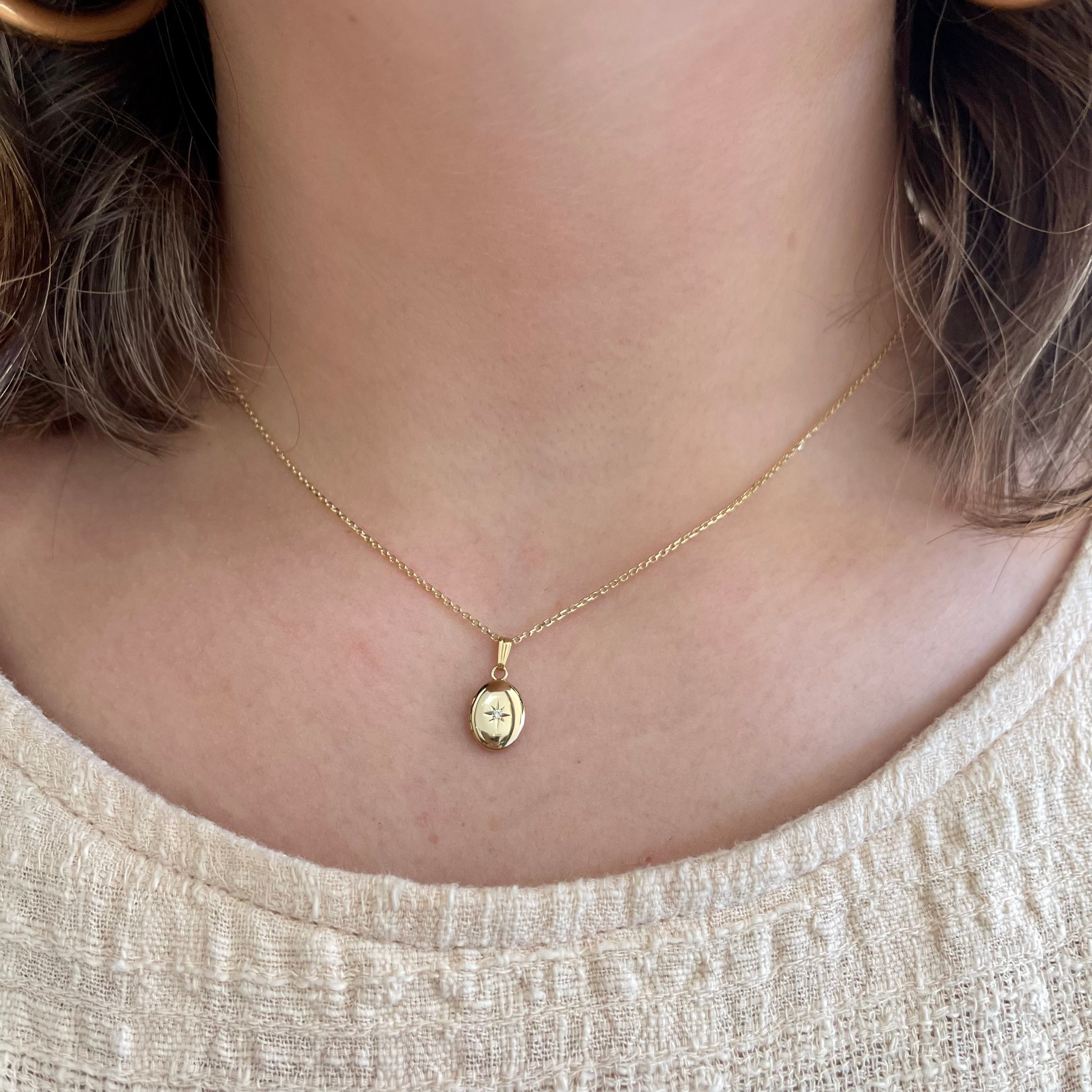 14K Yellow Gold Mini Oval Diamond Locket