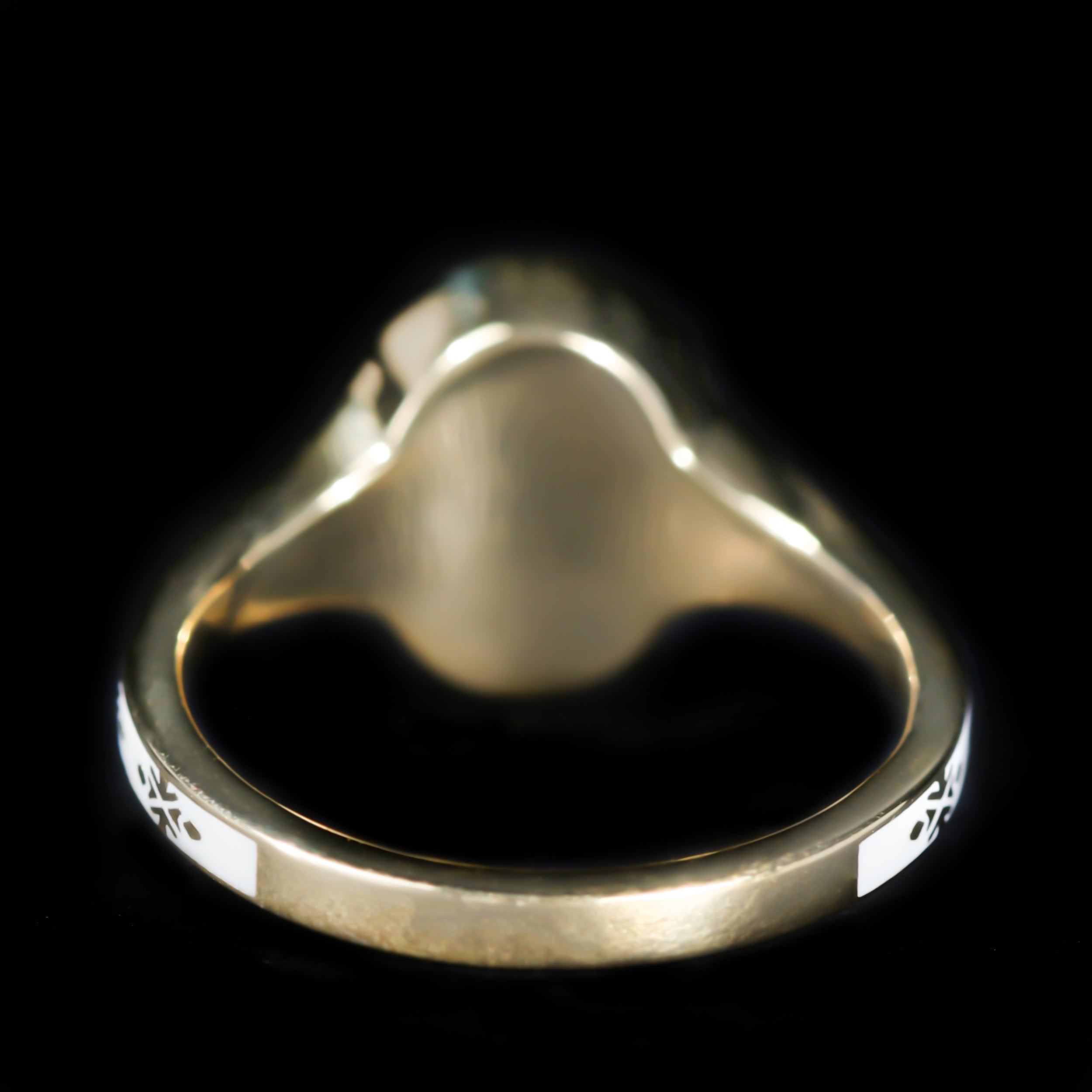 • This ring can be custom made to order in various enamel colors, metal colors, and center stones. Contact us to get started on your custom signet ring!