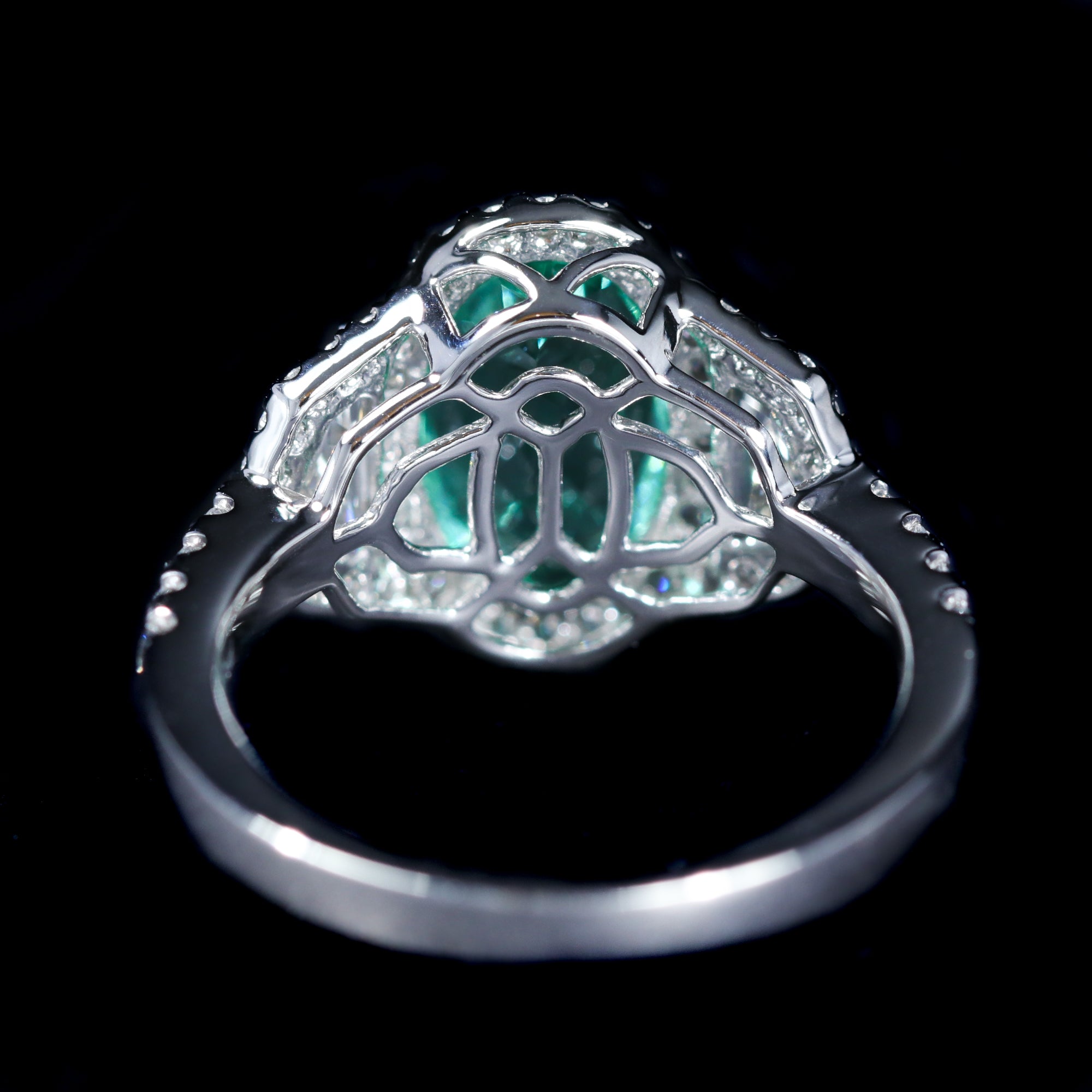 Platinum GIA 2.45 Carat Pariba Tourmlaine and Diamond Ring