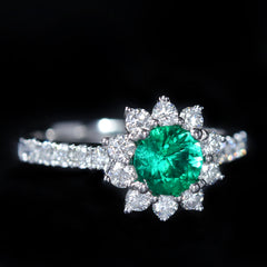 - Center Gem Details: 6 Round Cut Emeralds (approx. 0.19 carat)