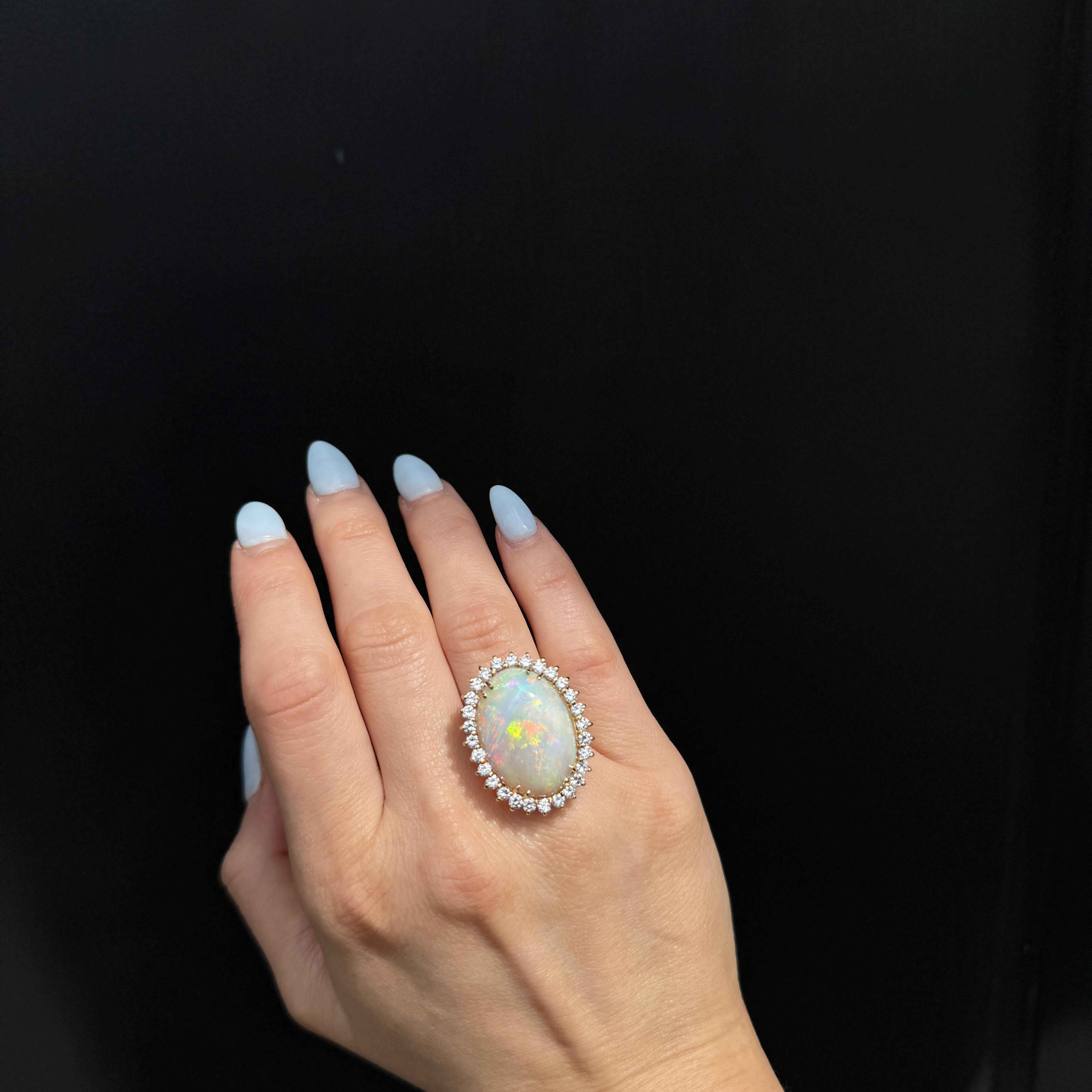 18K Yellow Gold 13.63 Carat Opal and Diamond Ring