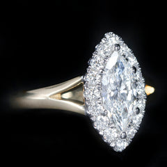 - Gem Details: 5 Marquise Cut Diamonds (approx. 0.46 carats total weight, VS1/VS2 clarity, G/H color); 6 Round Cut Diamonds (approx. 0.20 carats total weight, VS1/VS2 clarity, G/H color)