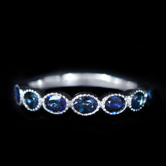 - Stones: 14 Round Brilliant Cut Diamonds (approx. 0.14 carats total weight, VS2 clarity, G/H color); 12 French Cut Sapphires (approx. 0.43 carats total weight)
