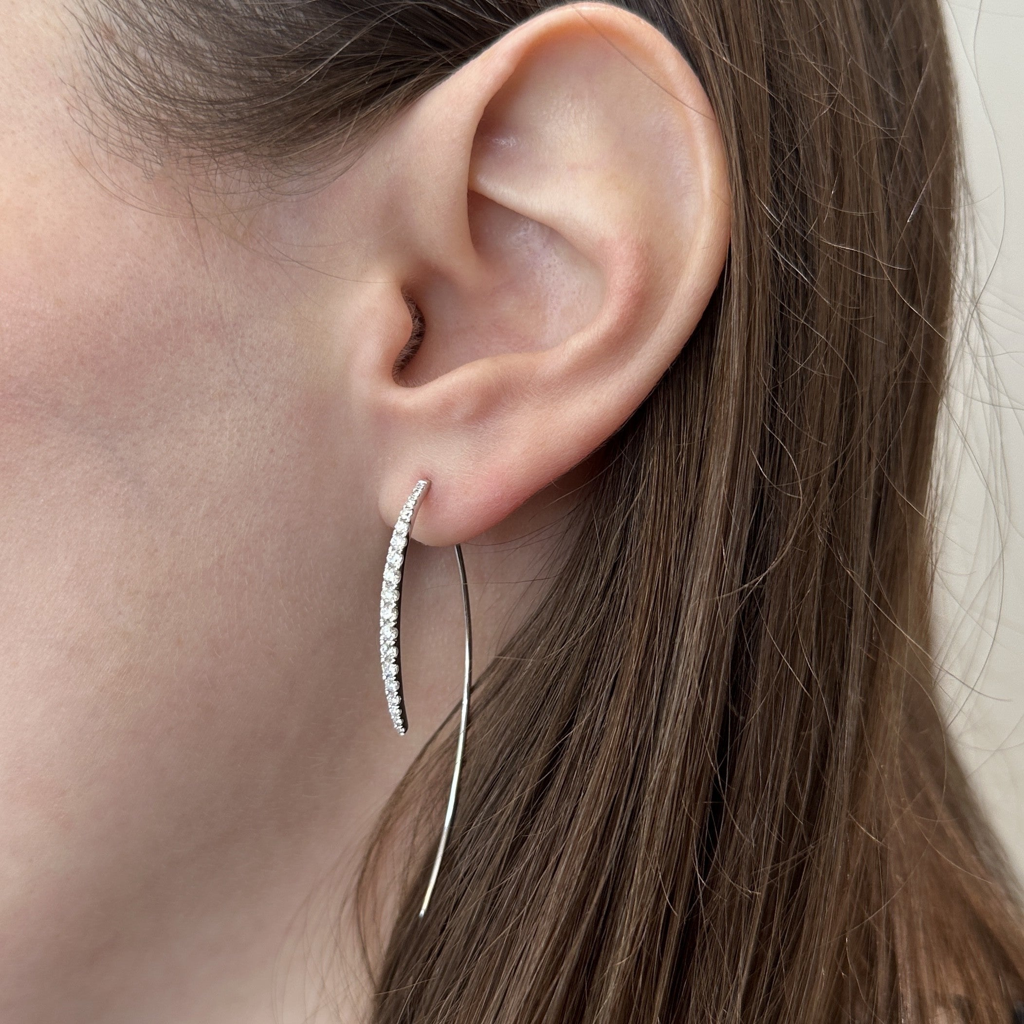 14K rose gold and diamond earrings. These threader earrings offer a modern, minimalist take on everyday sparkle. Chic and effortless, each earring features a line of round brilliant cut diamonds set along the front. Lightweight and easy to wear, they bring just the right amount of shimmer to any look.