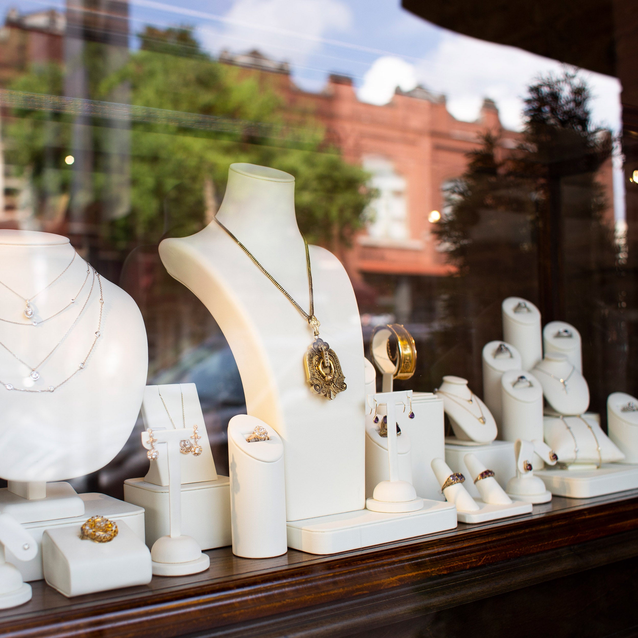 Like the authentic Victorian, Edwardian, and Art Deco jewelry in our beautifully lit showcases, our showroom always pays homage to the past. Built in the late 1800s, our historic location in Downtown Franklin has stood the test of time with many of its original features proudly on display.