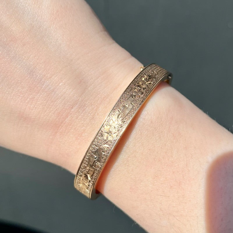 Victorian 10K Yellow Gold Engraved Bangle Bracelet