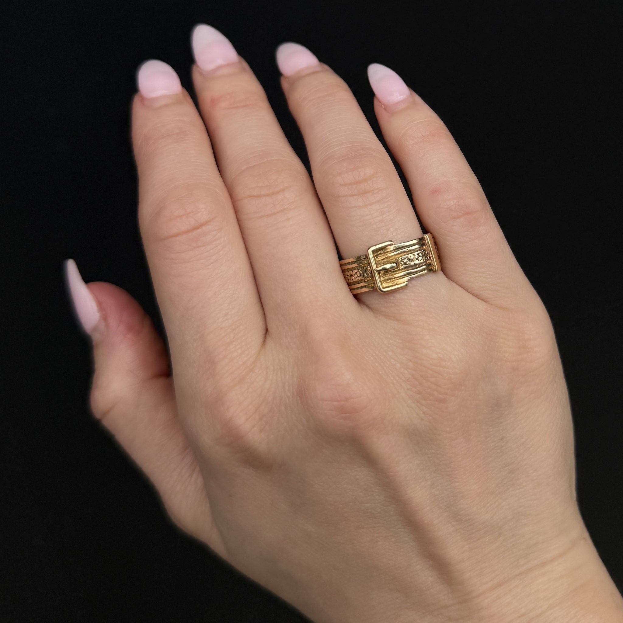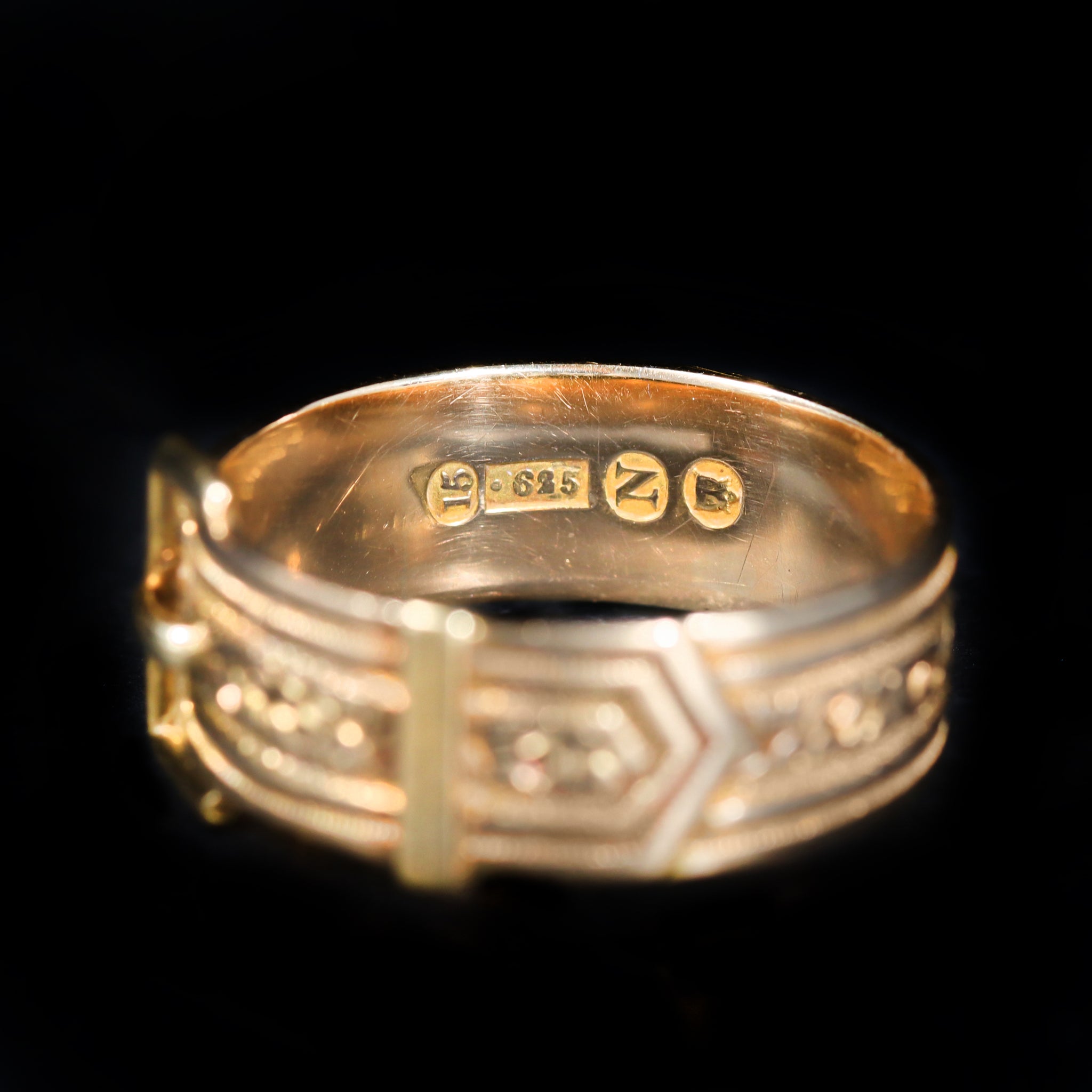 Victorian 15K Yellow Gold Buckle Ring, Circa 1888
