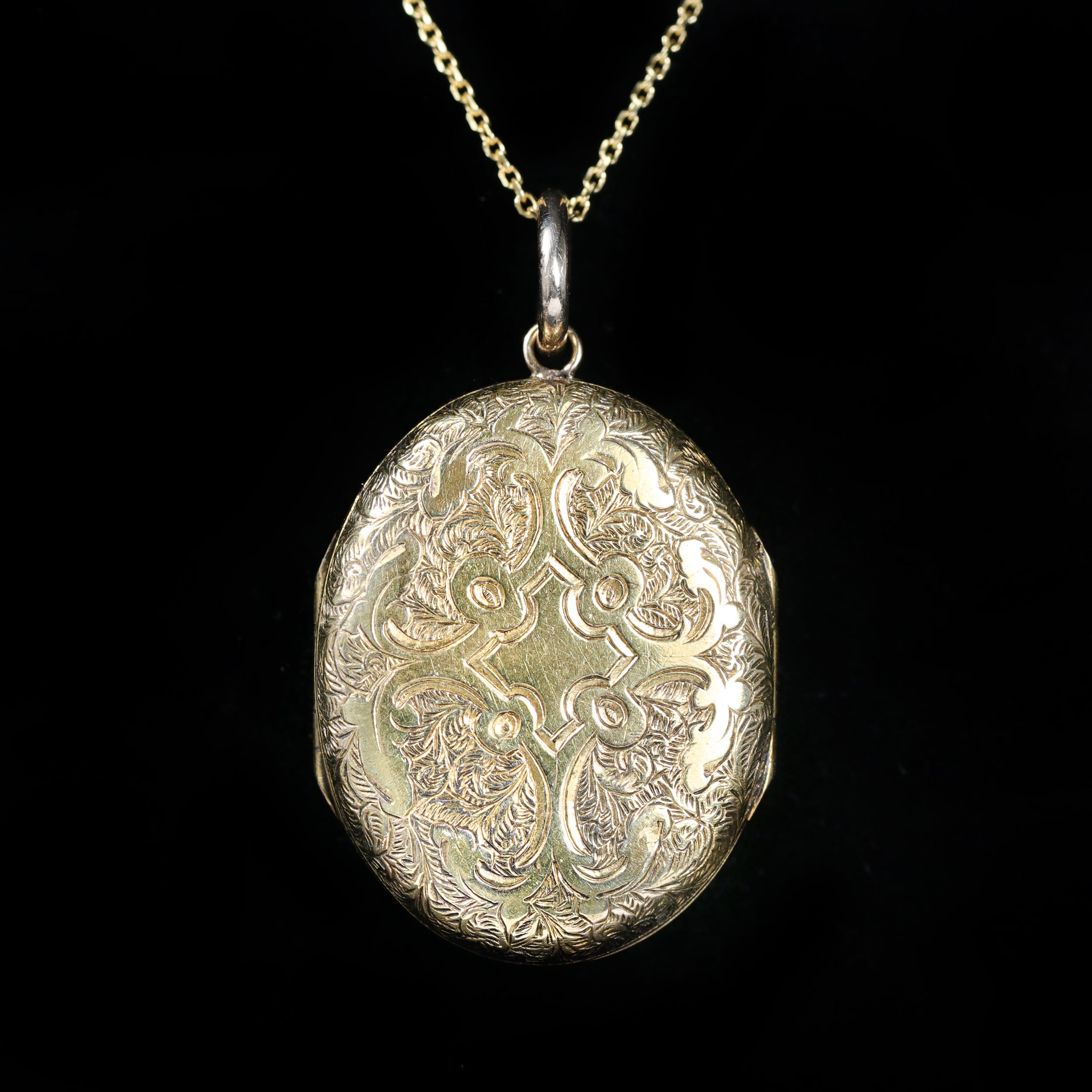 Victorian 18K Yellow Gold Engraved Oval Locket Pendant