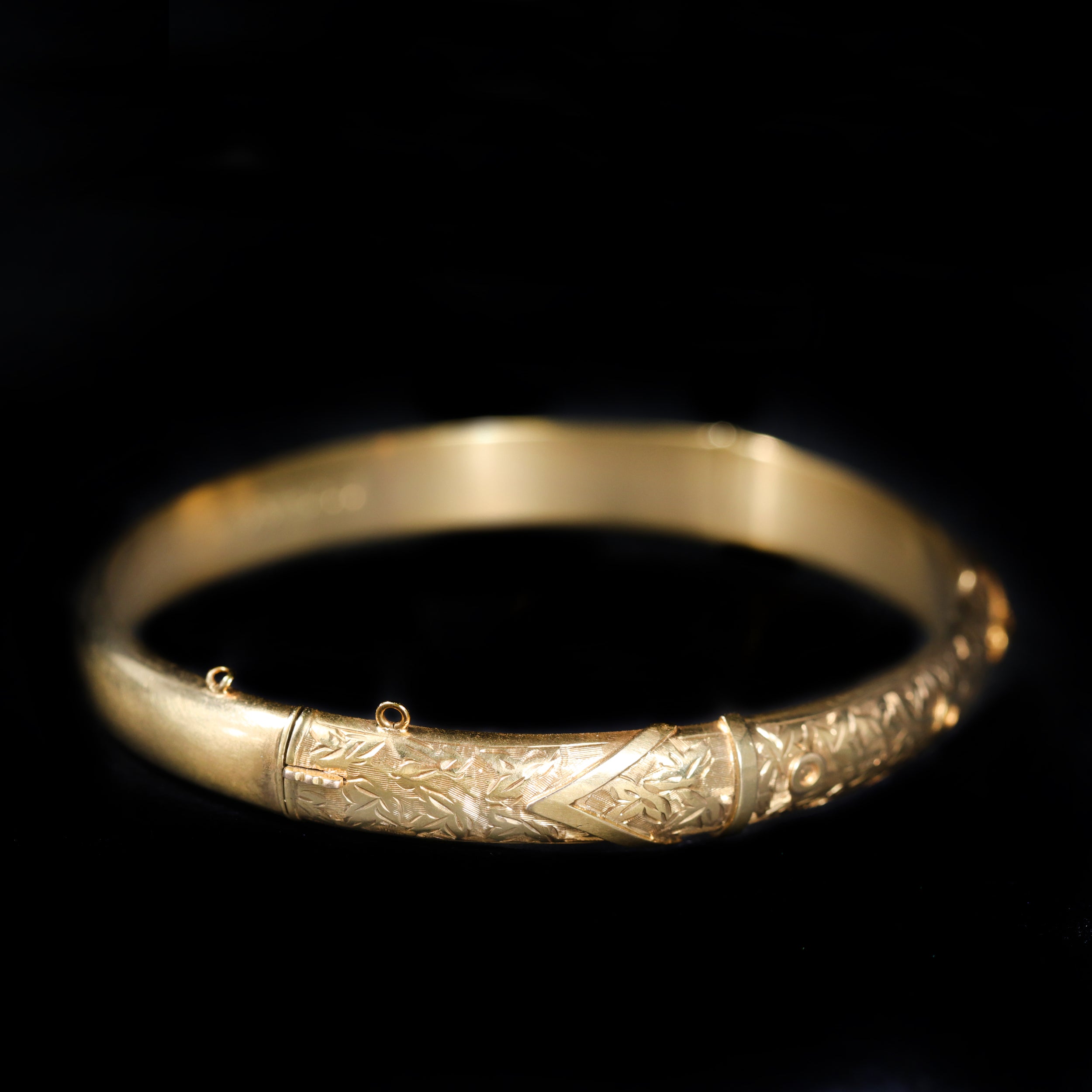 Victorian 9K Yellow Gold Buckle Bangle Bracelet - Walton's Jewelry